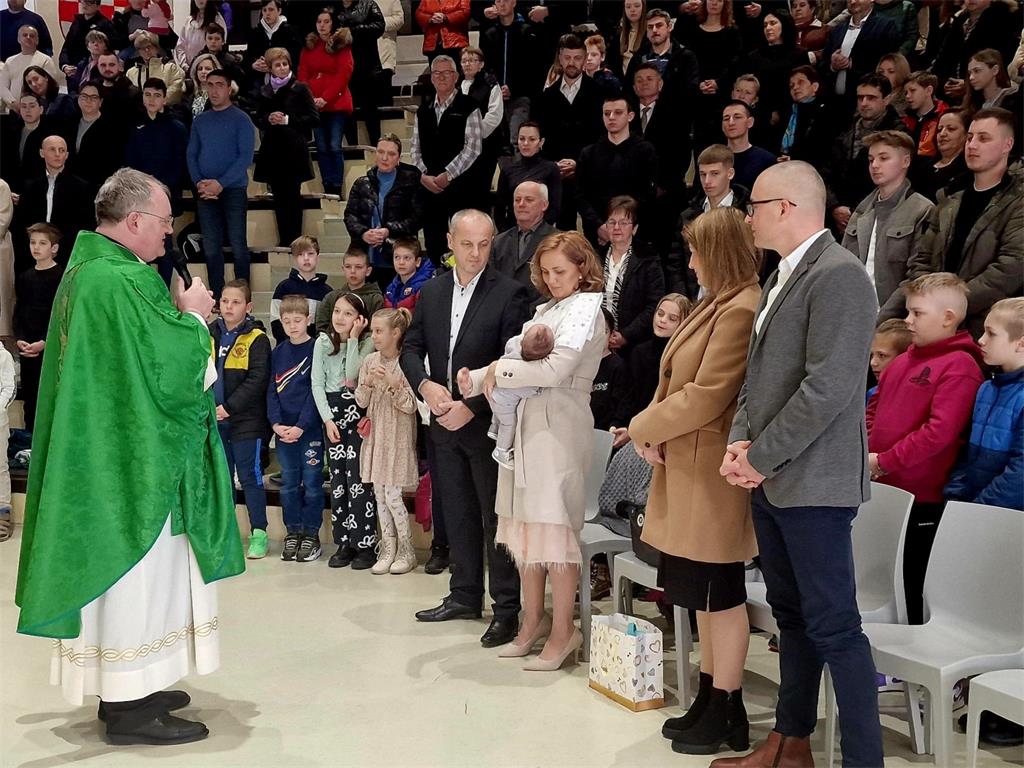 Prije početka misnog slavlja sve je srdačno pozdravio domaćin, župnik Branko Risek istaknuvši kako je krštenje petog djeteta veliko svjedočanstvo cijeloj župnoj zajednici, a osobito poticaj mladim obiteljima da nasljedujući primjer obitelji Sente budu otvorene životu i ohrabre se za radost novog života iz Božjih ruku.