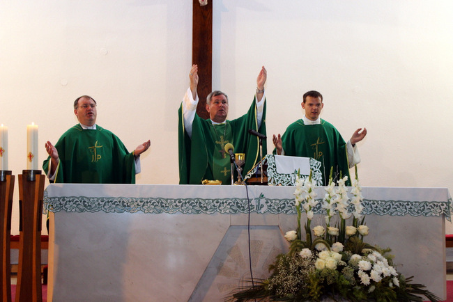 Misno slavlje predvodio je mons. Vlado Košić, biskup sisački, u koncelebraciji s mons. Antunom Senteom ml., rektorom svetišta i vlč. Anđelkom Katanecom, župnim vikarom. Euharistiju je pjevanjem obogatio župni zbor „Sv. Josip“ pod ravnanjem časne sestre Dominike Šašo, uz orguljsku pratnju Krešimira Klarića.
