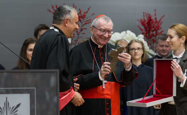 Lectio magistralis kardinal Parolin istaknuo je kako je učenje pape Franje o međunarodnim odnosima svjetlo koje može doprinijeti da se nadiđu prepreke, nasilje u svojim različitim oblicima, neuključivanje u suradnju, zatvaranje granica i srca.