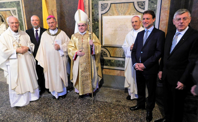 Nakon euharistijskog slavlja u krstionici bazilike predsjednik Hrvatskoga sabora Jandroković otkrio je ploču isklesanu na glagoljici te na hrvatskom i talijanskom jeziku na kojoj piše: