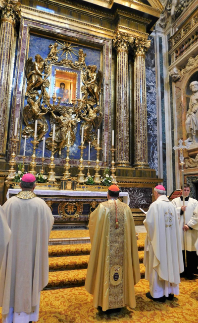 Hrvatski biskupi izmolili su „Pod obranu se tvoju utječemo” pred slikom Salus populi romani koja se čuva u bazilici Sv. Marije Velike. U misi su koncelebrirali i svećenici Papinskoga hrvatskoga zavoda sv. Jeronima na čelu s rektorom don Božom Radošem.