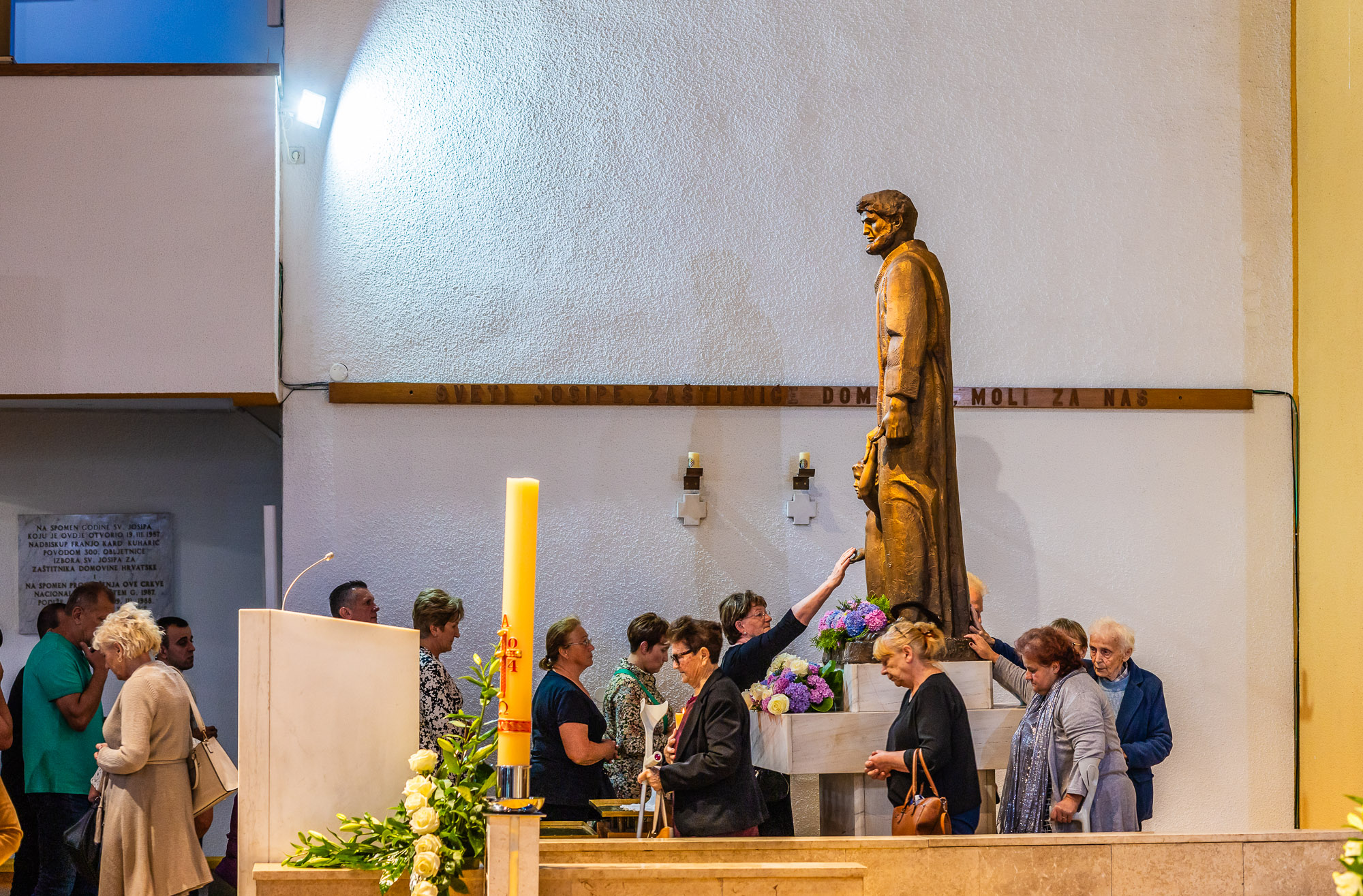 „Idite k Josipu" - taj slogan pogađa sredinu, pogotovo vas muškarce, muževe, očeve. Vi trebate biti zaštitnici svojih obitelji. Možda nećete dobivati smjernice za svoje poslanje u snovima, ali zato, ako se hranite Tijelom Kristovim i ako redovito dolazite na misu, odnosno primate sakramente, onda dobivate snagu da možete izvršiti svoje poslanje. Naravno da se to poslanje proteže i na ženske osobe, ali muškarci, muževi, sveti Josip jest vaš čovjek. Idite k Josipu, neka vam on bude zagovornik i neka vam on pomogne da i vi izgrađujete svoje obitelji na pravim temeljima. Onda će i naša domovina, lijepa naša Hrvatska doista nositi veliki pečat snage Božje i Božjega blagoslova, a onda će i ovaj svijet ići na bolje", zaključio je svoju homiliju preč. Žinić.