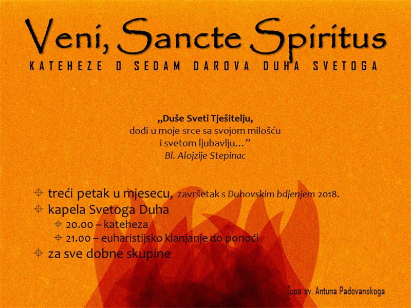 U Župi sv. Antuna Padovanskoga u Zagrebu započinju mjesečne kateheze o sedam darova Duha Svetoga. Susreti se odvijaju trećega petka u mjesecu; započinju u 20.00 sati u kapeli Svetoga Duha. Termini kateheza su:
