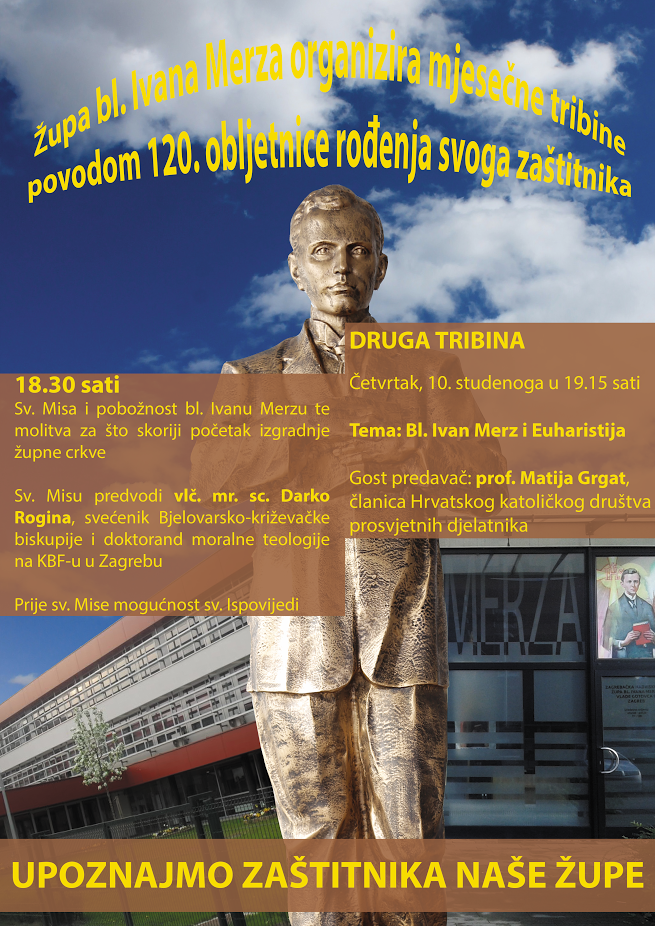 Cilj ovih predavanja je same župljane, ali i sve zainteresirane, što bolje upoznati sa životom i svetošću bl. Ivana. Tribina se održava u 19.15 sati u pastoralnom centru Župe u Ulici Vlade Gotovca 9. Prije tribine, u 18.30 sati, je sv. misa i pobožnost bl. Ivanu.