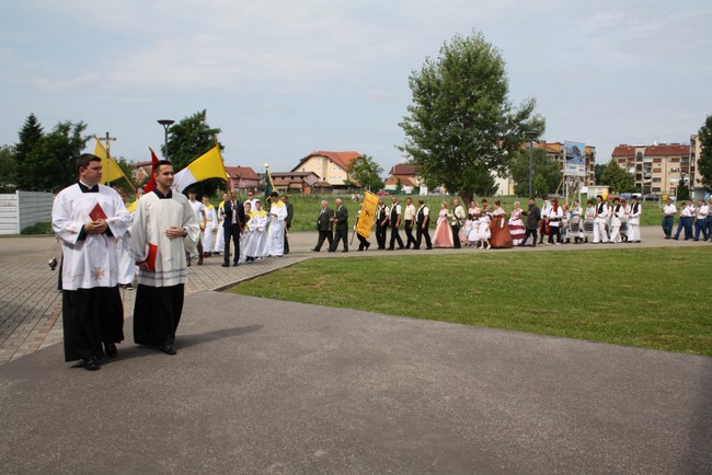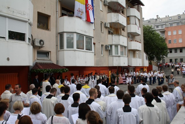 Nakon oproštaja od roditeljskog doma formirala se duga procesija svih nazočnih popraćena limenom glazbom, molitvom i pjesmom koja je odjekivala poznatom zaprešićkom „šetnicom.“ Okupljeni vjerni puk ove prve zaprešićke župe ispunio je sva mjesta u crkvi sv. Ivana Krstitelja, a koncelebranti s mladomisnikom Markom Čolakom zauzeli su svoja mjesta u svetištu koje je za ovu prigodu bilo posebno okićeno i uljepšano cvijećem.