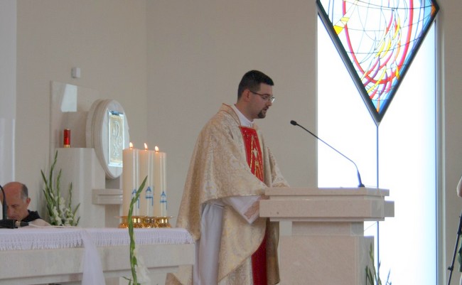 Propovjednik za slavlje Mlade mise bio je vlč. Darko Bručić – Pavuk upravitelj župe bl. Ivana Merza iz Španskog. U vrlo nadahnutoj i prigodnoj propovjedi vlč. Bručić je govorio o svećeniku koji nosi ljudima Boga i u svojem poslanju proživljava toliko toga lijepoga: „Čovjek, pogotovo današnjice, neumorno pliva tražeći sigurnu luku, mirnu uvalu. Djeca trebaju pažnju, osmjeh, uho koje će ih saslušati pet minuta. Mladi trebaju putokaz, orijentir i ohrabrenje u borbi i zalaganju za ljepše i vedrije sutra. Roditelji savjet što i kako s djecom, kako se nositi s pritiskom na poslu, kako obitelji osigurati ono najosnovnije za život.