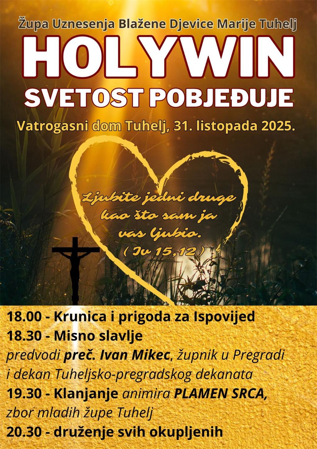Holywin. Susret započinje u 18 sati pobožnošću krunice i mogućnošću za ispovijed, a nakon toga uslijedit će sveta misa u 18.30 sati koju će predvoditi župnik iz Župe Pregrada i dekan Tuheljsko-pregradskog dekanata preč. Ivan Mikec. Nakon svete mise bit će euharistijsko klanjanje koje animira župni zbor mladih "Plamen".