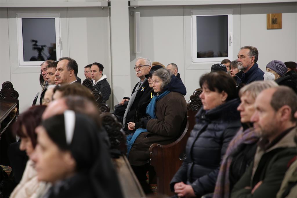 Na početku misnoga slavlja mons. Koren kazao je kako se u ovoj euharistiji na osobit način upućuje zagrljaj dragom ukrajinskom narodu i molitva za opravdanu težnju slobodi. "Želimo im po ovoj euharistiji posvjedočiti da nisu sami, da ih razumijemo i da želimo biti uz njih kao oni koji će im pružiti ruku pomoći, koji će im pokazati otvoreno srce i koji će biti kadri raširiti ruke i prihvatiti ih u njihovim nemoćima."