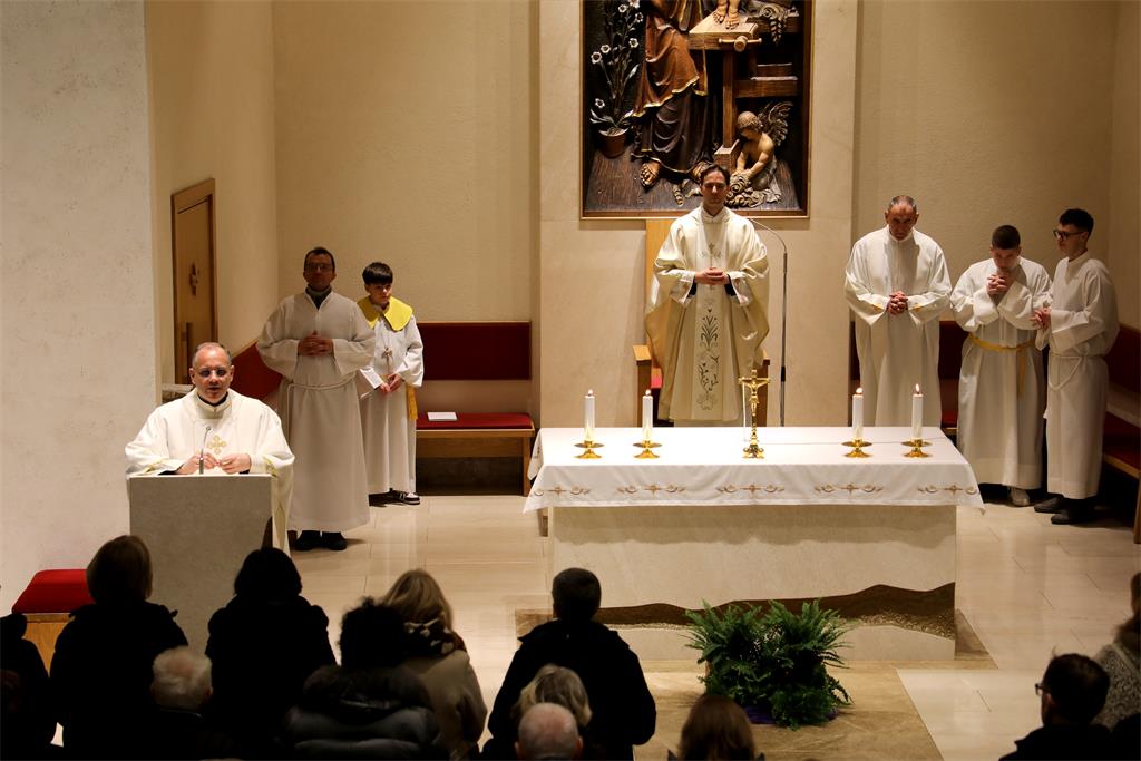 Na misi je koncelebrirao župnik Župe sv. Josipa vlč. Damir Ocvirk koji je izrekao homiliju u kojoj je pozdravio i zaželio dobrodošlicu biskupu Marku Kovaču koji je rođen u Župi sv. Josipa. Tu je primio sakramente kršćanske inicijacije, ministrirao, pjevao u župnom zboru i glumio u prigodnim dječjim predstavama. Nabrajajući to župnik je poručio da je mons. Kovač zapravo došao u svoj dom i u svoju obitelj.