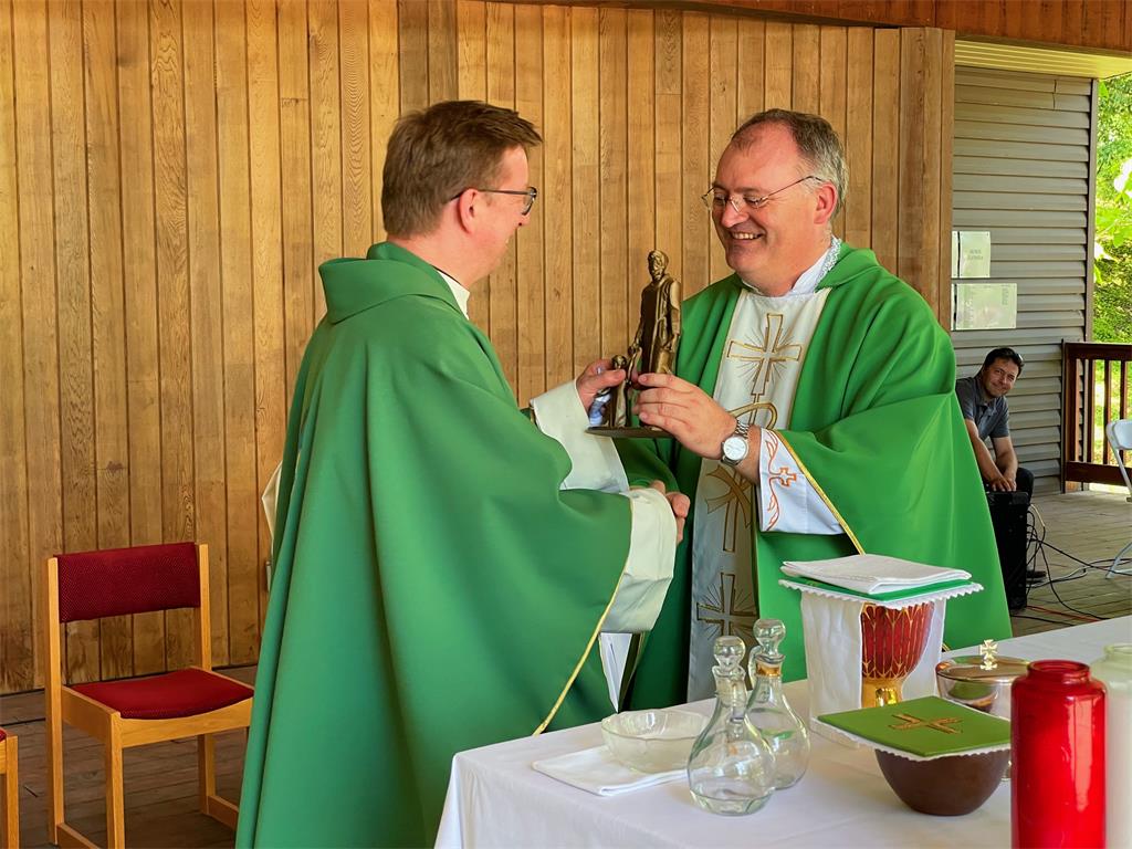 Pri kraju misnog slavlja mons. Sente uručio je vlč. Tenšeku repliku kipa svetog Josipa, rad akademskog kipara Ante Starčevića, koji resi Josipovo svetište u Karlovcu. Spomenutu repliku u 3D tehnici za ovu prigodu izradio je Nikola Baniček, dubovački krizmanik. "Sveti je Josip zaštitnik drage nam domovine Hrvatske, on je zaštitnik i vaše nove domovine Kanade, sveti je Josip zaštitnik Crkve, stoga rado uručujem ovu malu statu čudotvornog kipa svetog Josipa župniku Božidaru kako bi u ovim hrvatskim prostorima u Kanadi sve vas trajno podsjećao na vjerno služenje Isusu Kristu, vjernost Katoličkoj Crkvi i ljubav prema domovini Hrvatskoj. Ujedno vam ovom prigodom zahvaljujem na molitvenom zajedništvu koje smo snažno osjetili u vremenu svjetske pandemije, kao i na svakoj materijalnoj pomoći s kojom uređujemo Nacionalno svetište svetog Josipa u Karlovcu", zaključio je mons. Sente.