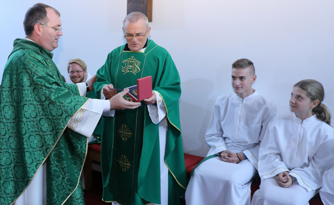 Na kraju svete mise mons. Sente darovao je vlč. Komorčecu medalju sv. Josipa napravljenu povodom 330. obljetnice proglašenja sv. Josipa zaštitnikom Hrvatske, a don Davidu svijeću s logom Svetišta.