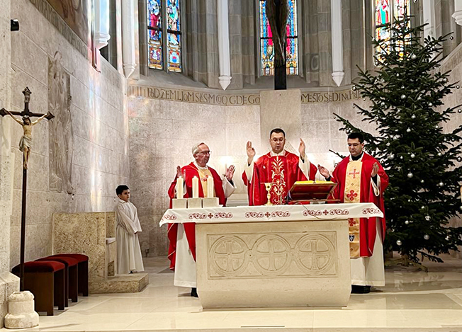 Svetu misu predvodio je preč. mr. sc. Željko Faltak, rektor Nadbiskupskog bogoslovnog sjemeništa u Zagrebu, a u koncelebraciji su bili preč. Vladimir Magić, župnik i rektor Akademske crkve sv. Katarine, i vlč. mr. sc. Tomislav Hačko, župni pastoralni pomoćnik.