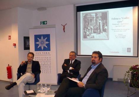 Hrvatsko katoličko sveučilište i Međunarodni katolički časopis Communio – hrvatsko uredništvo započeli su 23. listopada niz tribina u Godini vjere kojima je cilj dijalog između teologa i ateista i agnostika. Na prvoj u nizu tribina o Apostolskoj ispovijesti vjere o temi "Vjerujem u Boga, Oca svemogućega, Stvoritelja neba i zemlje" raspravljali su dr. Pavel Gregorić i dr. Ivica Raguž.