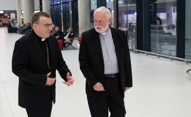 U Međunarodnoj zračnoj luci „Franjo Tuđman“, mons. Gallaghera dočekali su zagrebački nadbiskup kardinal Josip Bozanić, apostolski nuncij u Republici Hrvatskoj mons. Giuseppe Pinto, predsjednik Hrvatske biskupske konferencije i zadarski nadbiskup mons. Želimir Puljić, generalni tajnik HBK-a i hvarski biskup mons. Petar Palić, tajnik Apostolske nuncijature u Republici Hrvatskoj mons. Janusz Blachowiak, te veleposlanik Republike Hrvatske pri Svetoj Stolici Neven Pelicarić.