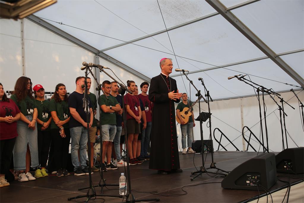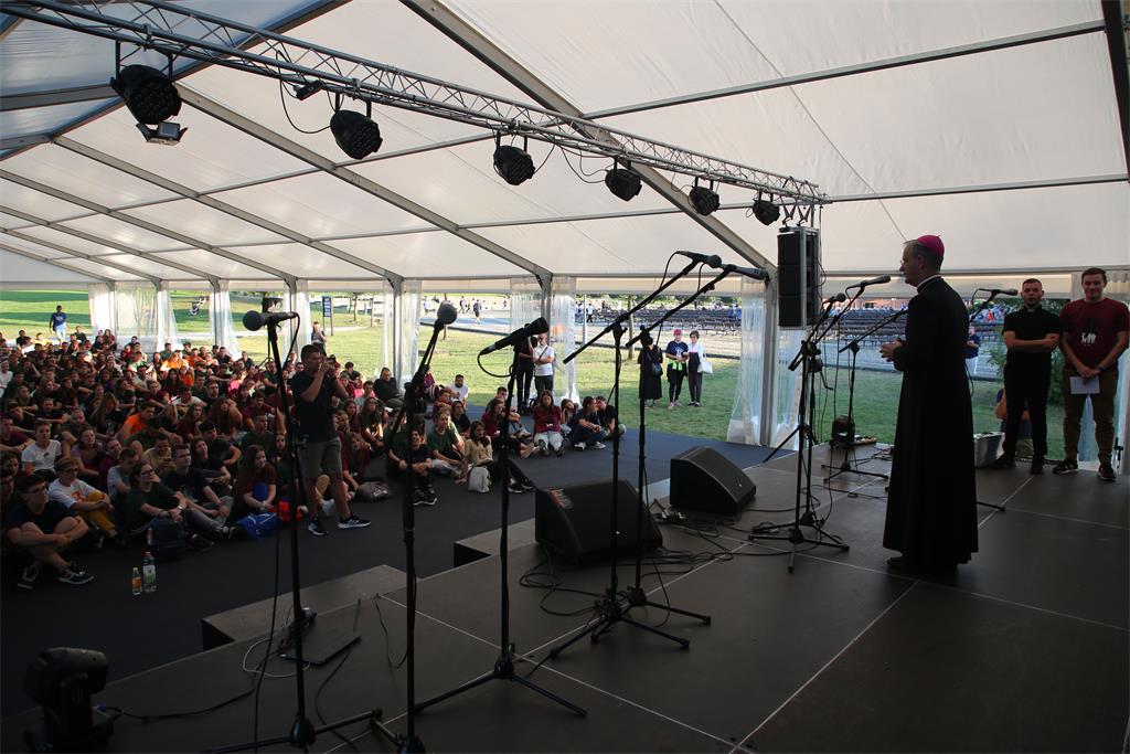 Mlade je na početku, nakon uvodne pjesme Nadbiskupijskog zbora mladih, pozdravio povjerenik za pastoral mladih vlč. Filip Šešek, koji je istaknuo kako u ovom hodočašću slavimo i jednu novost – po prvi puta se s mladima u Mariji Bistrici susreće nadbiskup Dražen Kutleša.