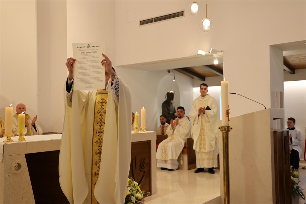Nakon popričesne molitve vlč. Topić pročitao je Povelju o posveti crkve.