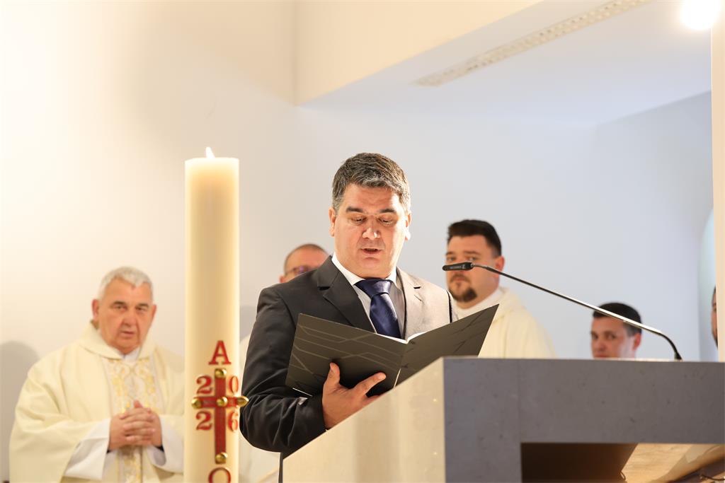 Budi hrabar i pokaži se čovjeku i uspjet ćeš u svemu što naumiš te poručio da su upravo te riječi vodile njega i cijelu župnu zajednicu u ovom ostvarenju. Zahvalio je svim svećenicima koji su bili na službi u ovoj župi kao i subraći u dekanatu. Na kraju je posebno zahvalio nadbiskupu Kutleši na dolasku i upućenim riječima ohrabrenja, a potom je uime župne zajednice Nadbiskupu uručen prigodni dar.