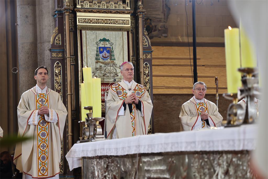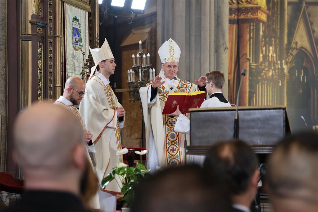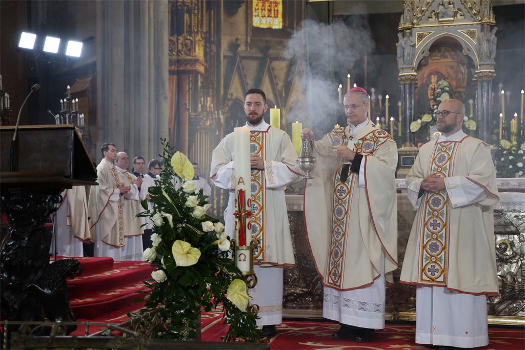 Zagrebački nadbiskup mons. Dražen Kutleša predvodio je na Nedjelju uskrsnuća Gospodnjega, 5. travnja 2026., svečano euharistijsko slavlje u Zagrebačkoj katedrali. Koncelebrirali su nadbiskup u miru kardinal Josip Bozanić, pomoćni biskup mons. Marko Kovač, kanonici Prvostolnog kaptola zagrebačkog, prebendari Prvostolne crkve zagrebačke i nadbiskupski tajnik vlč. Domagoj Topić.