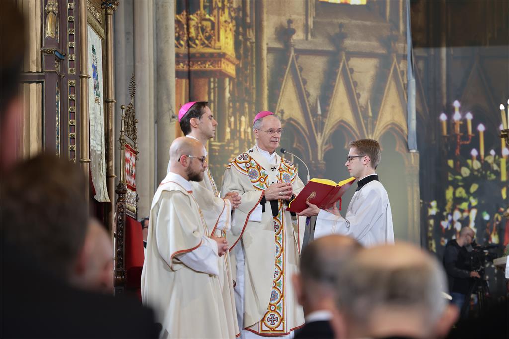 Nadbiskup Kutleša okupljenim je vjernicima čestitao Uskrs zaželjevši obilje Božjeg blagoslova. Pozdravio je i nazočne predstavnike državnih vlasti zahvalivši Ministarstvu kulture i medija na čelu s ministricom Ninom Obuljen Koržinek za trud i zalaganje u obnovi Zagrebačke prvostolnice kako bi se mise u njoj opet mogle služiti.