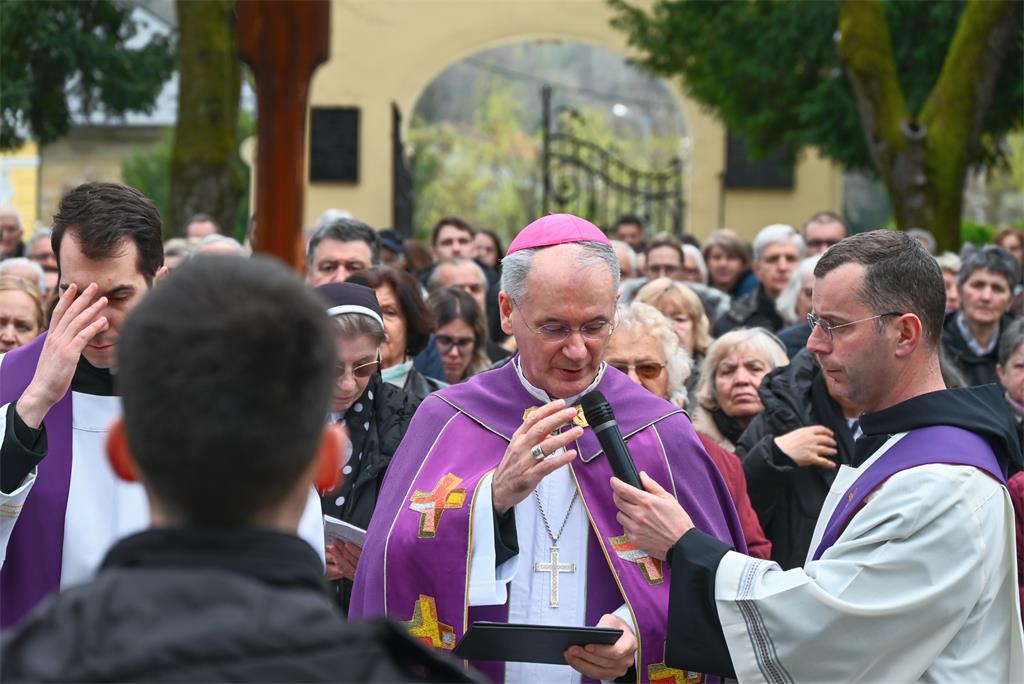 nadbiskup Kutleša uputio je vjernicima nagovor u kojem je pozvao vjernike da u sjeni križa koji "govori više od svake riječi" ne traže samo sjećanje na bol, nego ponajprije utjehu i nadu.