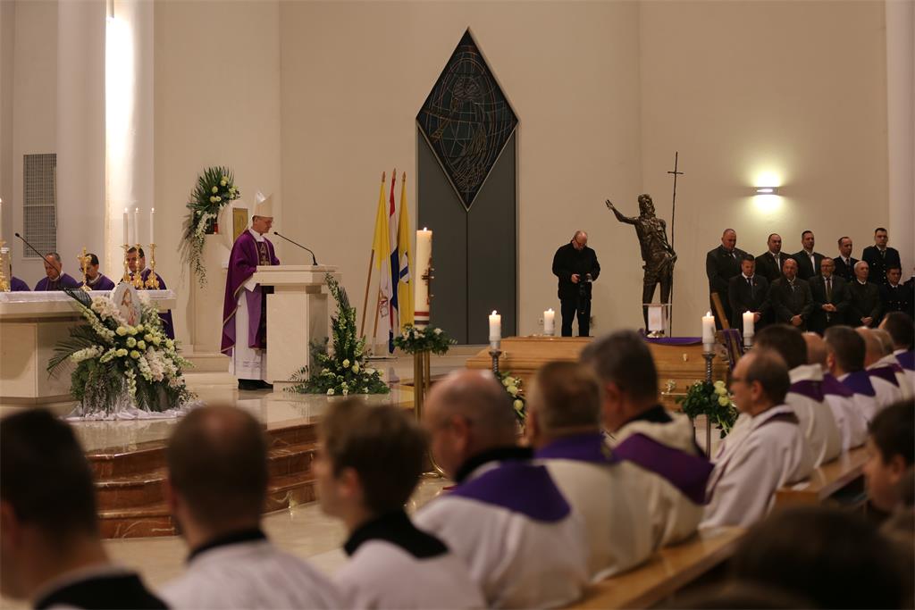 Na kraju homilije nadbiskup je pozvao vjernike da mole za dušu preč. Frkonje. "Zahvalni na ovom zemaljskom proputovanju koje je proživio s nama, za nebrojene milosti koje su se po njegovim svećeničkim rukama izlile na vjernike koji su mu bili povjereni kao i po patnji koju je u svojoj bolesti podnosio i prinosio. Molimo s njime za naše svećenike jer kakvi su oni takva će biti budućnost našeg naroda i Crkve", zaključio je nadbiskup Kutleša.