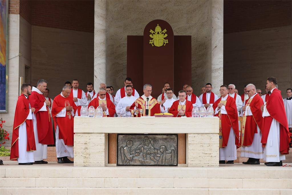 Istaknuo je da je znakovito "i to da naše zavjetno hodočašće pada na dan kada Crkva slavi blagdan Uzvišenja svetoga Križa. Na Križu je Sin Božji proslavljen jer je ostao Ocu poslušan do kraja. Pod Križem je Majka ostala vjerna jer je u tami sačuvala nadu. Stoga su Križ i Majka nerazdvojivo povezani. Križ nam pokazuje visinu Božje ljubavi, a Marija dubinu nade koja nikada ne razočarava. Zato i naš dolazak ovamo nije samo izraz pobožnog običaja, nego čvrstog uvjerenja da pred Marijinim likom možemo pronaći novu snagu; da u njezinoj majčinskoj blizini možemo otkriti smisao u svojim tamnim trenucima; da nam ona može pomoći pretvoriti naše tjeskobe u povjerenje, a naše slabosti u hod prema Kristu."