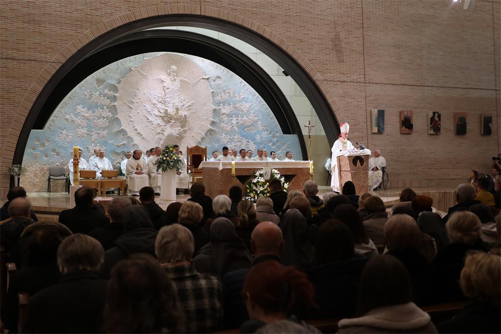 "Draga braćo i sestre, pedeset godina vaše župe znak je da Bog ispunja svoja obećanja. On ne zaboravlja one koji mu ostaju vjerni. Ovaj jubilej neka bude trenutak zahvalnosti i obnovljenog misijskog zanosa. Riječi uklesane u kenotaf u ovoj crkvi poručuju nam da ne klonemo kad je teško držati stijeg čestitosti, poštenja i vjere, nego da se sjetimo žrtve koju su podnijeli naši branitelji i toliki Bogu vjerni naši sinovi i kćeri. Bez žrtve se ne može postići ništa vrijedno ni trajno", kazao je nadbiskup Kutleša te zaključio: "Neka ova zajednica vjernika putuje u budućnost i dalje zakriljena Duhom Svetim, da on u njoj rađa neustrašivu vjeru, djelotvornu ljubav i postojanu nadu. Neka vaše obitelji budu male Crkve pune Duha, a cijela župa ognjište vjere za ovaj grad. Dok naša sjećanja postaju uspomena, neka budućnost postane obećanje da će Duh Sveti i dalje govoriti kroz vas, klicati u vama i djelovati po vama. Molimo svi istim žarom: 'Da mihi animas, caetera tolle!' Daj nam, Gospodine, duše, i sve drugo uzmi jer duše su tvoje, a u tebi je naša radost, naše poslanje i naša nagrada."