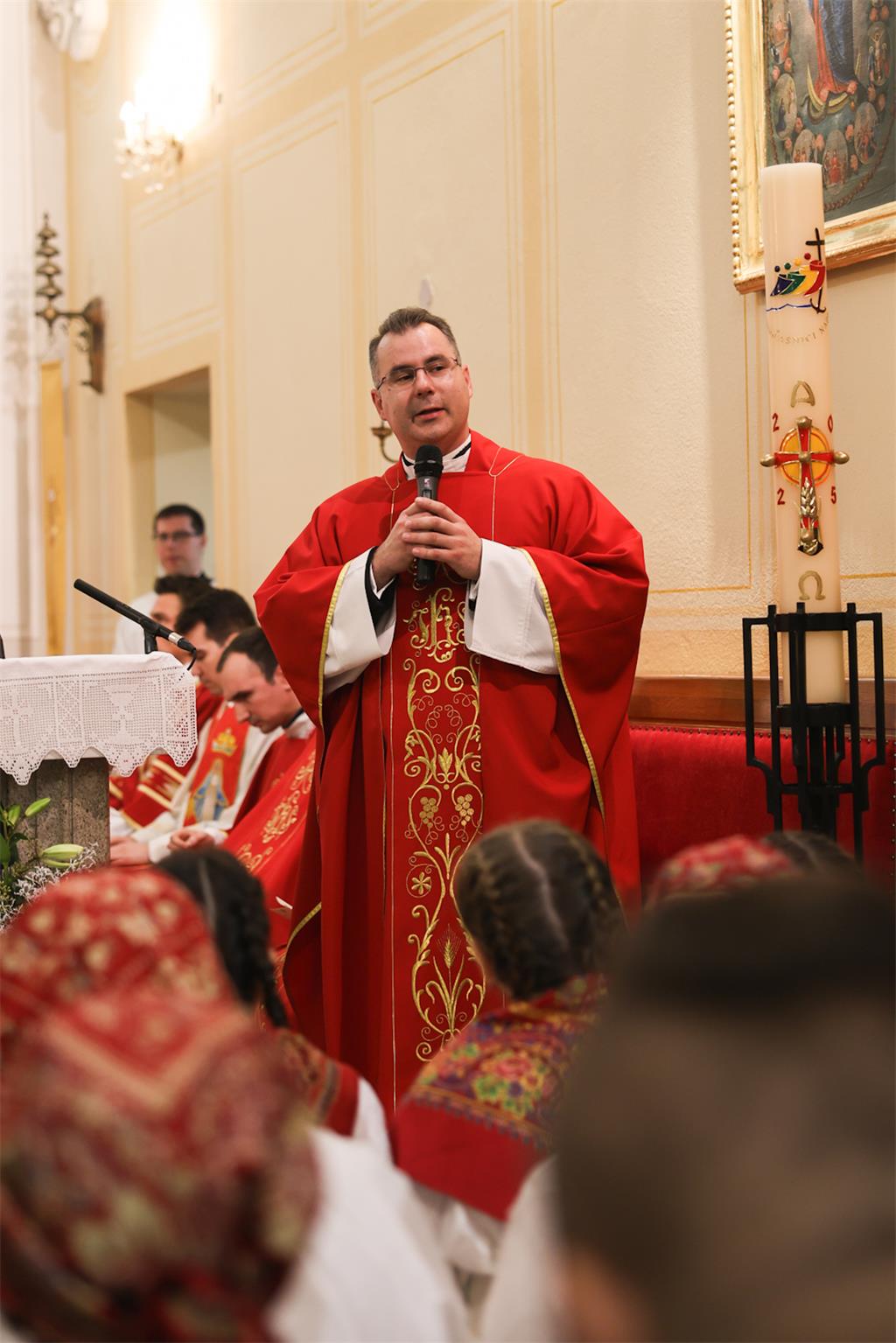 Na početku misnoga slavlja sve prisutne pozdravio je preč. Ivan Vučak kazavši: "Nakon šezdeset i pet godina on je ovdje ponovno s nama u našoj župnoj crkvi Presvetoga Trojstva. On je ovdje s nama kako bi s nama molio i prikazivao Gospodinu molitve za nas. Nalazimo se u Svetoj jubilarnoj godini 2025., godini nade, i želimo poput bl. Alojzija Stepinca biti hodočasnici nade."