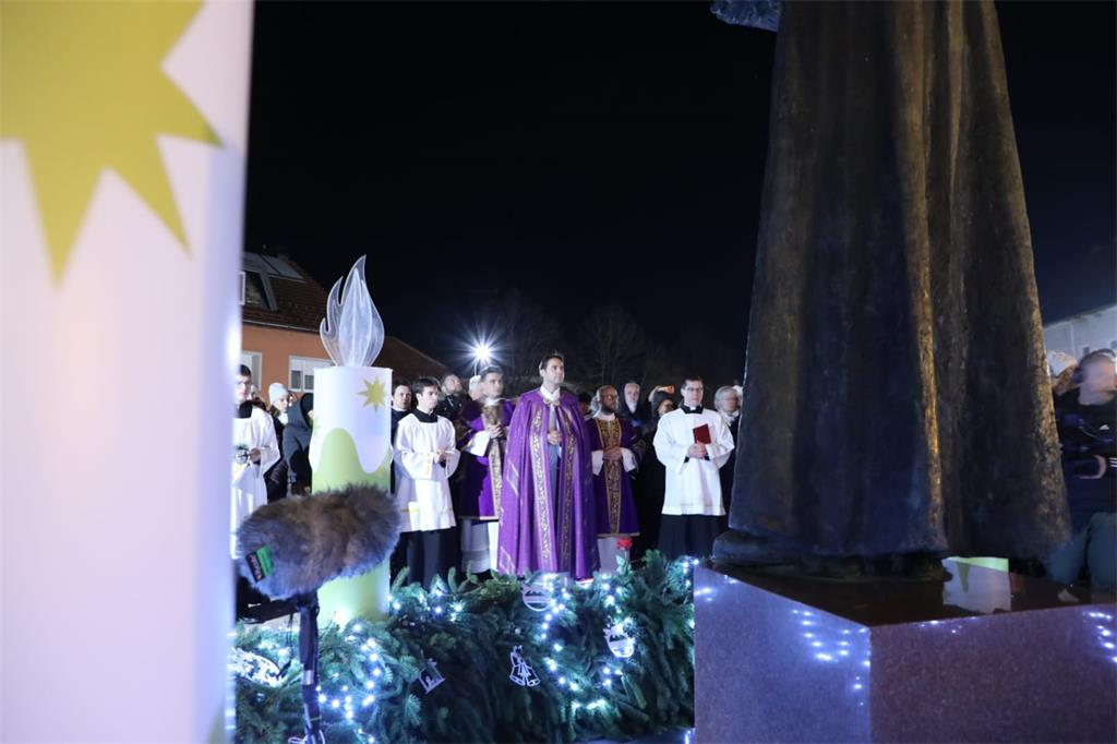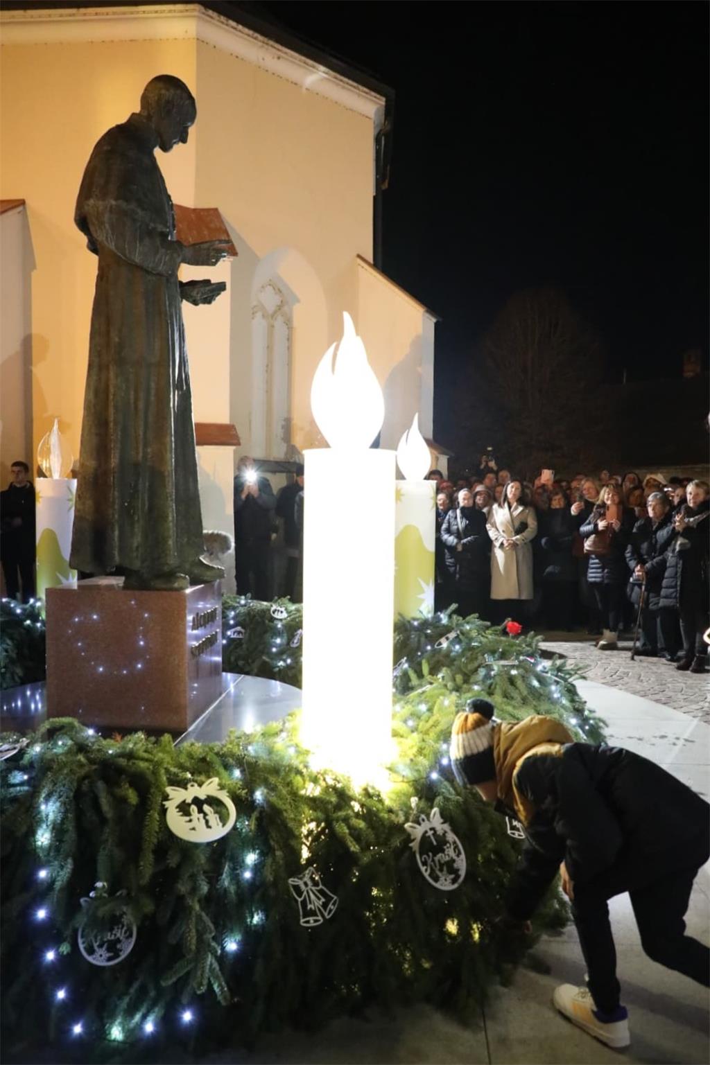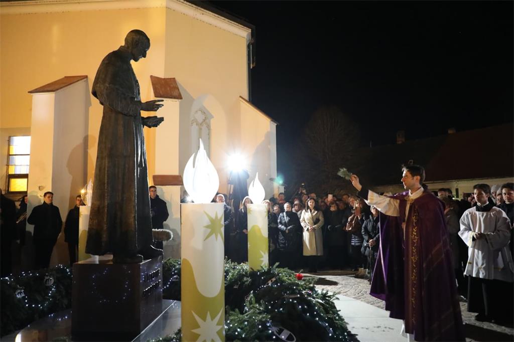 Nakon misnoga slavlja okupljeni su se uputili do Blaženikova kipa na otvorenome gdje je imenovani pomoćni biskup zagrebački mons. Marko Kovač blagoslovio adventski vijenac te je, ususret prvoj nedjelji došašća, upaljena prva svijeća na vijencu, a upalio ju je Viktor Švalj, sedmo dijete obitelji Švalj.