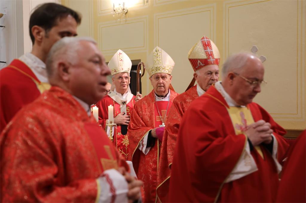 Koncelebrirali su varaždinski biskup u miru mons. Josip Mrzljak, vojni ordinarij u miru mons. Juraj Jezerinac, vladika križevački u miru mons. Nikola Kekić, imenovani pomoćni biskupi zagrebački mons. Marko Kovač i mons. Vlado Razum, generalni postulator za kauze beatifikacije i kanonizacije Zagrebačke nadbiskupije mons. Juraj Batelja, dekan Jastrebarskog dekanata i župnik Župe Presvetoga Trojstva u Krašiću preč. Ivan Vučak te ostali okupljeni svećenici.