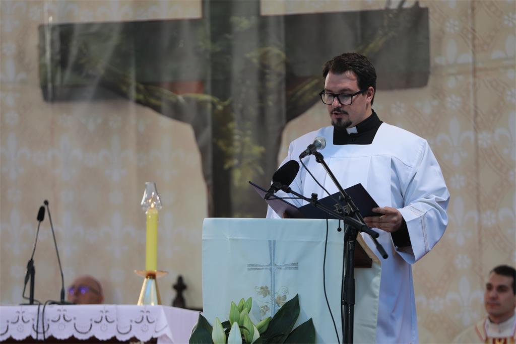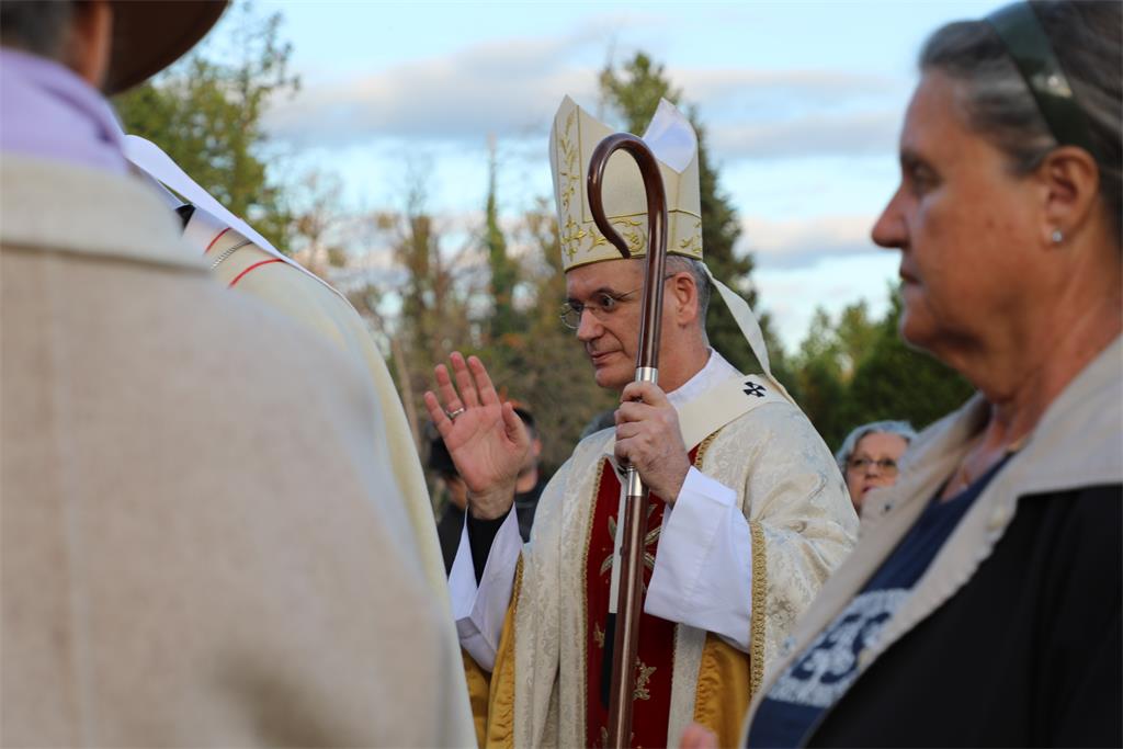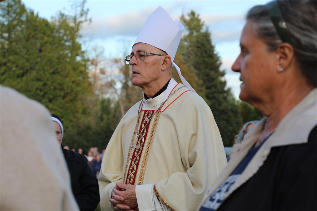 Dobrodošlicu je zaželio nunciju Lingui i nadbiskupu Kutleši rekavši: "Molim vas da započnete svetu misu i našim molitvama povežete Crkvu, zajednicu vjernika koji su već u raju; zajednicu vjernika koji se pripremaju kroz čistilište da gledaju ljepotu lica Njegova, i ovu našu borbenu Crkvu, koja se bori protiv napasti grijeha, da se svi okupimo u domu Očevu."
