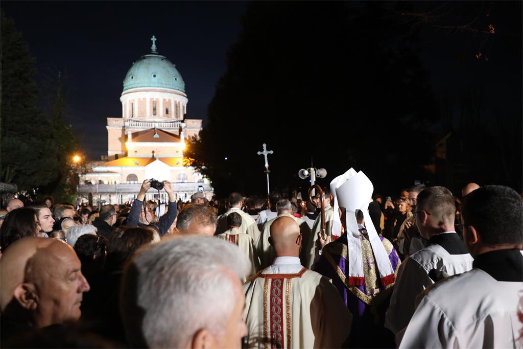 "Oko nas tisuće svijeća treperi molitvama koje se uzdižu prema nebu. Svaka kap voska svjedoči prolaznost, ali svaki plamen priziva vječnost. Svaka svijeća nosi jedno ime, jedno lice, jednu priču utkanu u naš život. Koliko li je samo u tim svjetlima neizrečenih riječi, propuštenih zagrljaja, praštanja koja nismo imali priliku izreći! Naša prisutnost ovdje svjedoči o ljubavi koja ne umire, a svjetlo vjere u srcu poručuje kako smrt nema posljednju riječ nad čovjekom", istaknuo je Nadbiskup.
