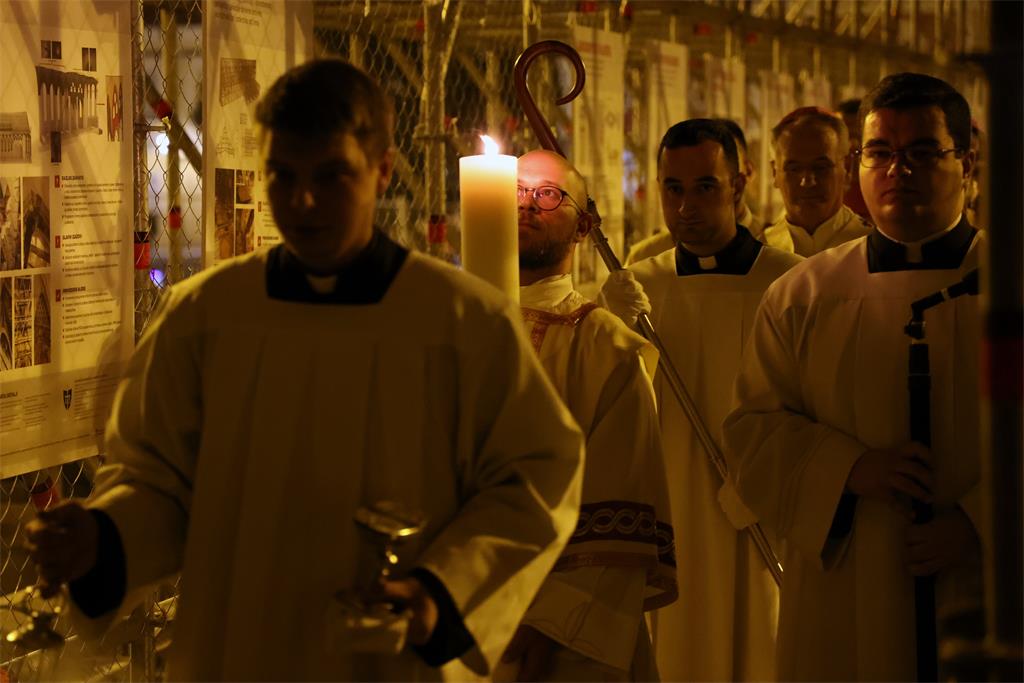 Vazmeno bdjenje započelo je Službom svjetla kojom se uskrsna svijeća - svjetlo Kristovo u procesiji unijela u Zagrebačku prvostolnicu. Potom je otpjevan Hvalospjev uskrsnoj svijeći te je uslijedila Služba riječi.