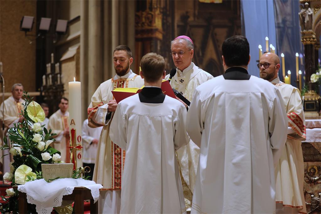 Zagrebački nadbiskup mons. Dražen Kutleša predvodio je Vazmeno bdjenje u svetoj noći Velike subote, 4. travnja 2026. godine, u Zagrebačkoj katedrali, u zajedništvu sa zagrebačkim nadbiskupom u miru kardinalom Josipom Bozanićem, pomoćnim biskupom mons. Markom Kovačem, kanonicima Prvostolnoga kaptola zagrebačkog, prebendarima Prvostolne crkve zagrebačke te nadbiskupskim tajnikom vlč. Domagojem Topićem.