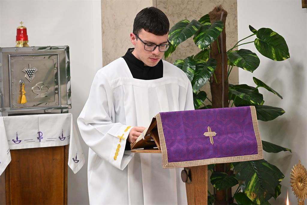 Misno slavlje održano je u privremenom bogoslužnom prostoru svečane sjemenišne dvorane, a koncelebrirali su rektor preč. Matija Pavlaković, duhovnik sjemeništaraca vlč. Matko Filipović te nadbiskupski tajnik vlč. Domagoj Topić.