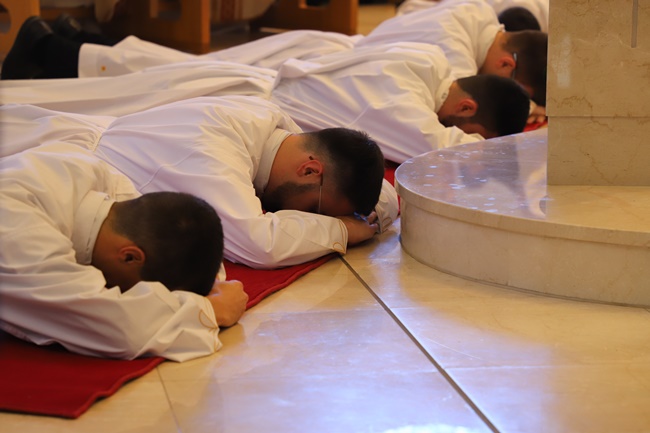Kandidate za red đakonata predstavio je rektor Bogoslovije preč. Faltak, nakon čega su osmorica dijecezanskih i petorica redovničkih kandidata izrekli svoj "Evo me!"