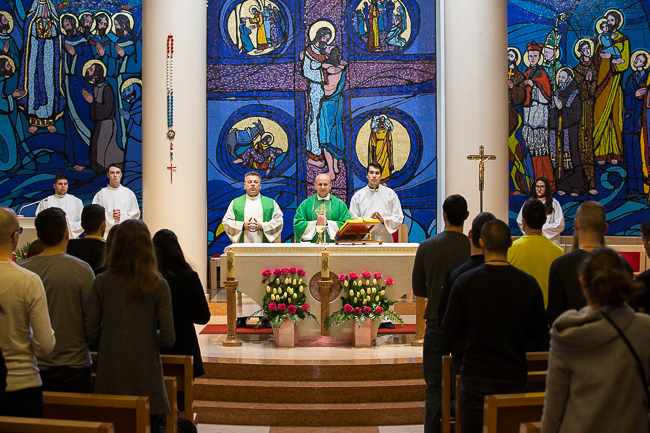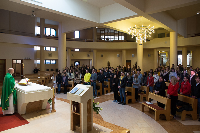 Susret je započeo euharistijskim slavljem, koje je u Župi Svih Svetih u Sesvetama predvodio povjerenik za pastoral mladih Zagrebačke nadbiskupije vlč. Ivan Valentić, u zajedništvu s domaćim župnikom vlč. Marijem Miglesom.