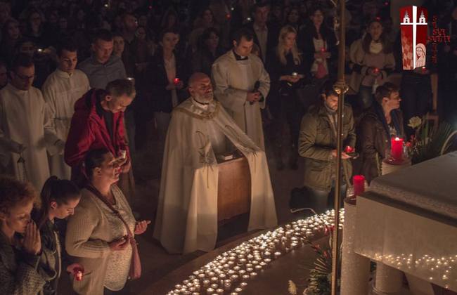 Osvrnuo se i na sve veću navezanost mladih na materijalne stvari te je istaknuo kako se prava sreća nalazi u širenju ljubavi i pomaganju drugima. Nakon svete mise uslijedilo je euharistijsko klanjanje pred Presvetim Oltarskim Sakramentom. Prigodni meditativni tekstovi pridonijeli su osjećaju sabranosti.