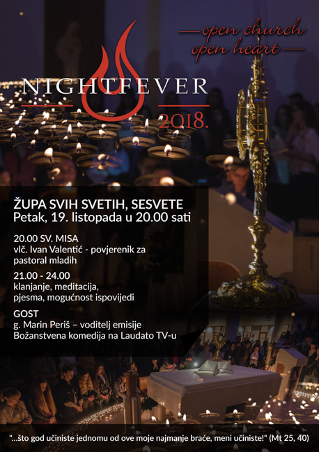 Nightfever će se održati 19. listopada 2018. godine s početkom u 20 sati u pastoralnom centru u Sesvetama.