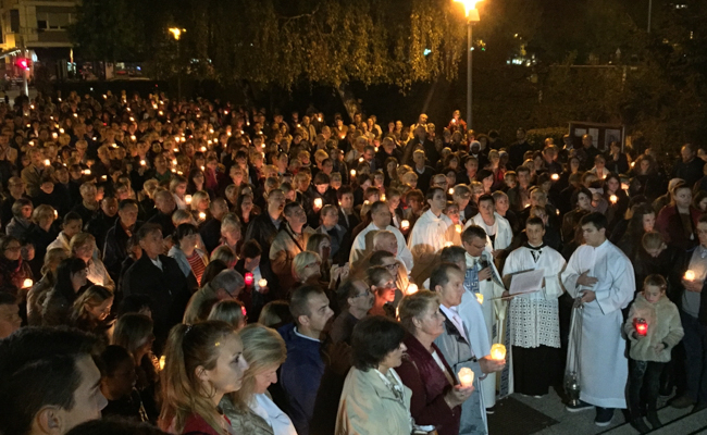 Prije samog središnjeg slavlja uslijedila je redovita pobožnost Majci Božjoj na kojoj je cijeli okupljeni vjernički puk, predvođen župnikom vlč. Damirom Ocvirkom, predmolio žalosna otajstva krunice povjeravajući u Marijino nevino srce svakoga od nas, sve naše obitelji, osobito naše mlade, povijest, sadašnjosti i budućnost našeg naroda i ovoga svijeta kako bi ga povela u svojoj majčinskoj ljubavi u mudrost evanđeoskoga života. Posebno lijepo bilo je doživjeti sklad jednoglasne molitve tijekom desetica krunice po kojoj smo svi postali jedno.
