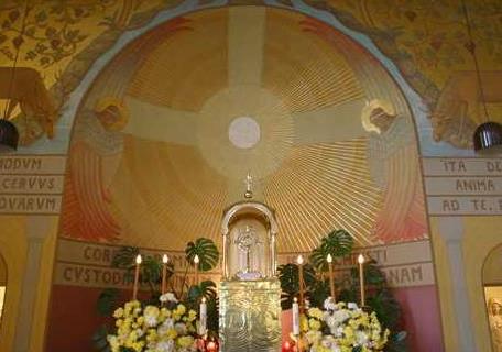 Unutrašnjost kapela je bila u svom potpunom sjaju. Sve freske imale su euharistijsku poruku počevši od golemog sunca, simbola euharistije, u svetištu pa do liturgijskih anđela i vitraja na prozorima. Dvije godine kasnije nadbiskup Alojzije Stepinac pozvao je kler i Božji narod posebnom okružnicom na vječnu adoracija pred Presvetim za okončanje drugog svjetskog rata i da Zagreb bude očuvan od razaranja. On je sam osobno na prvi petak l. listopada 1943. započeo vječno klanjanje, nazvano sveudiljno klanjanje.