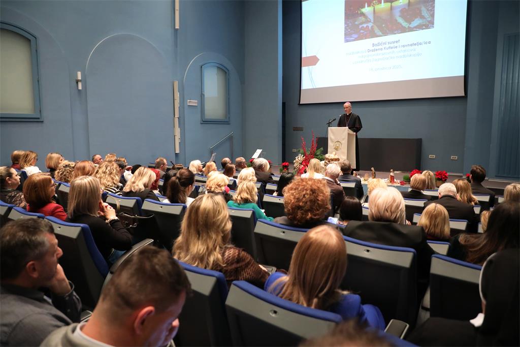 Predbožićni susret zagrebačkog nadbiskupa mons. Dražena Kutleše i ravnateljica i ravnatelja predškolskih, osnovnoškolskih i srednjoškolskih ustanova u Zagrebačkoj nadbiskupiji održan je u utorak 16. prosinca 2025. u dvorani "Vijenac" u Nadbiskupijskom pastoralnom institutu u Zagrebu.