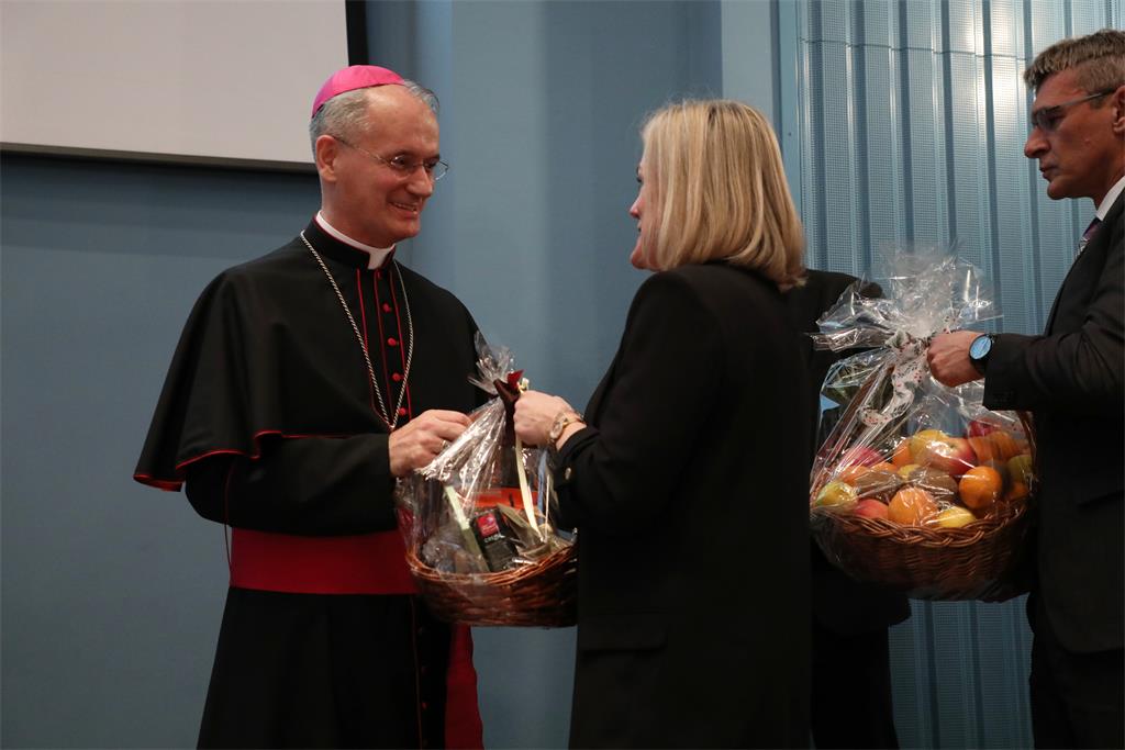 Ravnateljica Vragotuk zahvalila je na pozivu i istaknula kako odgoj za vjeru i odgoj u vjeri u suvremenom obrazovanju "pomaže djeci razvijati unutarnju stabilnost, osjećaj smisla, odgovornost prema drugima i prema zajednici. U tom procesu neizostavna je uloga Crkve koja svojim djelovanjem i prisutnošću trajno podsjeća na vrijednosti koje nadilaze prolaznost i naše svakodnevne izazove." Zahvalila je Nadbiskupu na razumijevanju i otvorenosti prema dijalogu, kulturi i odgoju.