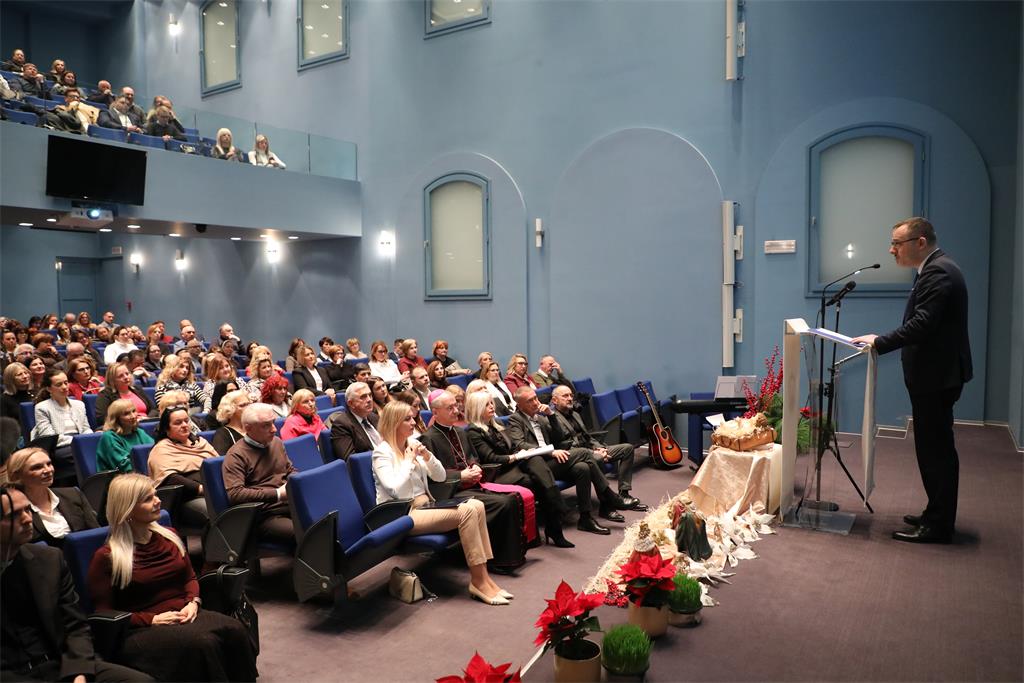 Nakon ravnateljice Milković okupljene je pozdravio pročelnik Juroš i osvrnuo se na proteklu godinu. Istaknuo je da "danas kada gledamo u novu 2026. godinu, kada razmišljamo o Božiću, možemo reći da ćemo, kao što smo to napravili u svim izazovima i pitanjima u ovom periodu, zajedno napraviti ozbiljne korake koje trebamo da budemo ovdje zbog obrazovanja i dobrobiti naše djece i mladih."