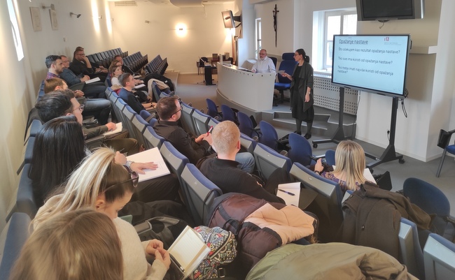 Interaktivno predavanje Opažanje nastave održala je dr. sc. Gordana Barudžija, viša savjetnica u Agenciji za odgoj i obrazovanje koja je govorila o mogućnostima koje u prvoj godini svoga rada vjeroučitelji pripravnici mogu koristiti kako bi svoj rad nadograđivali i jačali se u profesionalnom iskustvu kad stanu pred svoje učenike, među kojima svaki razred i svaki pojedini učenik ima svoje osobitosti kojima se vjeroučitelj treba prilagođavati i prema njima planirati svoj nastavni sat. Drugo predavanje održao je viši savjetnik Dalibor Adžić, koji je naglasio prava, ali i obaveze svakog vjeroučitelja u profesionalnom životu. Posebno se osvrnuo na tijek polaganja stručnog ispita.