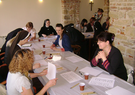 Drugu radionicu vodila je Jelena Vigljević, prof., na temu Mala biblijska pisarnica. Svrha je radionice bila upoznavanje odgojitelja/ica s mogućnostima predstavljanja Biblije kao drevne knjige. U praktičnom dijelu odgojiteljice su same perima radile kaligrafsku tehniku pisanja slova bambusovim perima u crnoj i crvenoj tinti.