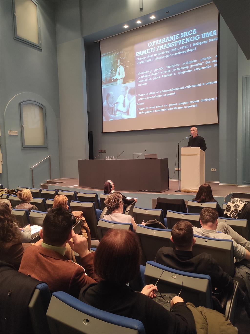 Lk 24, 33/24, 46): Religijski jezik od doživljaja do razumijevanja" održao je prof. dr. sc. Ivan Dodlek. Prof. Dodlek u izlaganju je naglasio da ponekad želja za teološkom preciznošću i jasnoćom teološkog govora često dodatno zakomplicira religijski govor koji je ionako današnjem čovjeku dosta nerazumljiv. No, profesor je istaknuo da se uvijek propitivala razumljivost religijskog jezika te kako ga pojednostavniti, a ne banalizirati. Rješenje vidi u pronalaženju sredine između teološke preciznosti i razumljivosti religijskog govora. Prof. Dodlek u predavanju je dao smjerokaz za cjelovito razumijevanje specifičnoga religijskog jezika, a koji uključuje neizostavan element doživljaja onoga o čemu se govori.