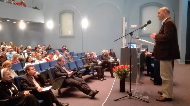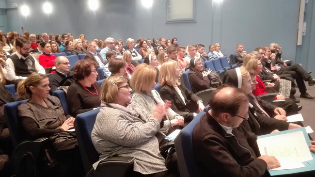 Trećim je blokom predavanja, koji se pobliže pozabavio kompetencijama specifičnim za vjeroučiteljsku struku, revno moderirao prof. dr. sc. Tonči Matulić. Temu Vrjednovanje inicijalnog obrazovanja nastavnika vjeronauka na visokim teološkim učilištima u Hrvatskoj pripremili su prof. dr. sc. Ružica Razum i doc. dr. sc. Denis Barić. Njihovo su polazište empirijska istraživanja koja daju uvid u stanje na terenu radi razumijevanja stvarnosti i planiranja budućega djelovanja, a tako je i s planiranjem inicijalne formacije nastavnika vjeronauka – a to je obrazovanje koje će voditi razvoju profesionalnog identiteta vjeroučitelja, a tu će profesionalnost povezati i s učenicima u školi i njihovim potrebama kroz usvojene predmetne, psihološko-pedagoške, metodičko-didaktičke i istraživačke kompetencije. Kod vjeroučitelja se uz opće nastavničke kompetencije podrazumijeva i osobno stajalište, smatra prof. Barić, odnosno vjernički stav. On ističe kako istraživanja pokazuju da se vjeroučitelji ne smatraju dostatno duhovno osposobljenima, što pak spada i na općevjerničko osobno opredjeljenje. Profesorica Razum istaknula je promjenu paradigme obrazovanja danas kroz promjenu identiteta vjerskoga odgoja i obrazovanja koje u novome kontekstu poprima školski karakter te se naglasak stavlja na stjecanje određenih ishoda, koje također valja definirati kako bi bili mjerljivi na kraju nastavnoga procesa. O Cjeloživotnome učenju i nastavničkim kompetencijama govorile su prof. dr. sc. Blaženka s. Valentina Mandarić i mr. sc. Gordana Barudžija kroz praktična iskustva rada na terenu, s konkretnim poteškoćama s kojima se u praksi susreću vjeroučitelji. Predstavile su kompetencije prema strateškim dokumentima te naglasile ulogu Agencije za odgoj i obrazovanje u kontekstu cjeloživotnog učenja. Agencija kroz svoje više savjetnike za vjeronauk organizira stručna usavršavanja s naglaskom na potrebi razvijanja digitalnih kompetencija, što potiče i zadnji UNESCO-v dokument iz 2017. U tom smjeru predavačice vide i prijedloge za reformu studijskih programa na KBF-u kako bi se za profesionalni život što bolje pripremili vjeroučitelji od kojih se ipak u nastavnom procesu traži „još ono nešto više“. Oni, naime, svjedočanstvo nude i svojim životom te se i njih promatra kao predstavnike Crkve. Treći je blok predavanja zaključio prof. dr. sc. Josip Šimunović predstavivši Stažiranje i stručni ispit kao vrjednovanje izlaznih nastavničkih kompetencija. Kroz 25 godina vjeronauka u školi pred vjeroučitelje su postavljena očekivanja i Crkve i države te oni moraju pokazati (i dokazati) poznavanje metode i struke, ali i odnos koji imaju s vjerom. Pripravnički staž u tom je smislu dio trajne formacije u koji je uključeno više sudionika (pripravnik, mentor, Povjerenstvo za pripravnički staž te ispitivači na samom polaganju stručnoga ispita). Cilj je tog procesa utvrđivanje osposobljenosti pripravnika za samostalni rad (esejem te izvedbom nastavnoga sata i usmenim dijelom ispita).