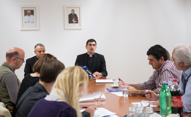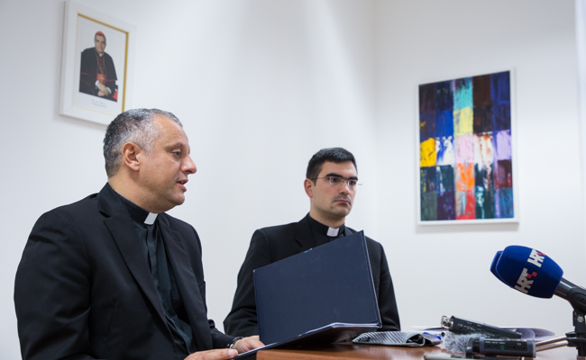 Prisutnim novinarima obratili su se rektor Hrvatskog katoličkog sveučilišta prof. dr. sc. Željko Tanjić i vlč. Borna Puškarić, pročelnik Tiskovnog ureda Zagrebačke nadbiskupije, koji je predstavio