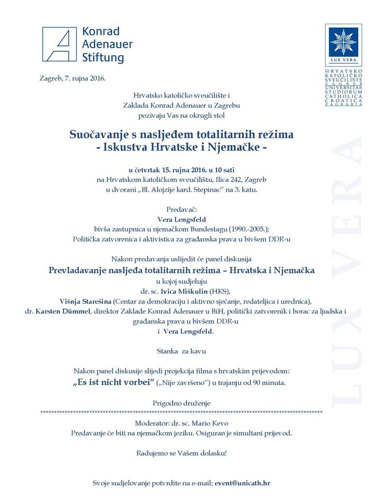 Okrugli stol: Suočavanje s nasljeđem totalitarnih režima - Iskustva Hrvatske i Njemačke